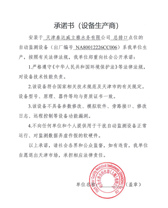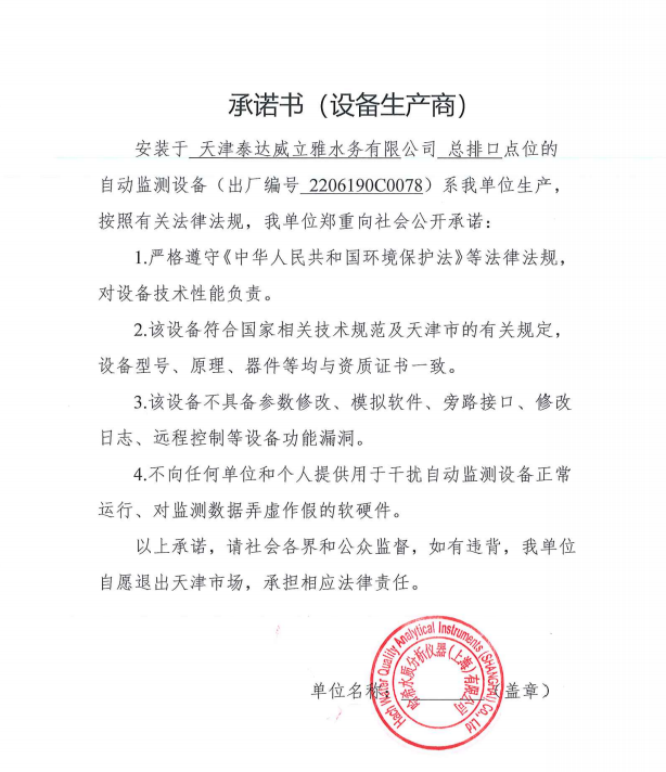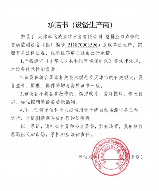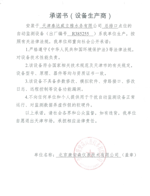 自2014年,依《國家重點監控企業污染源監督性監測及信息公開辦法(試行)》,主要污染物排放情況經天津市重點企業自行檢測數據發布系統對外公布,主動接受社會公眾監督。