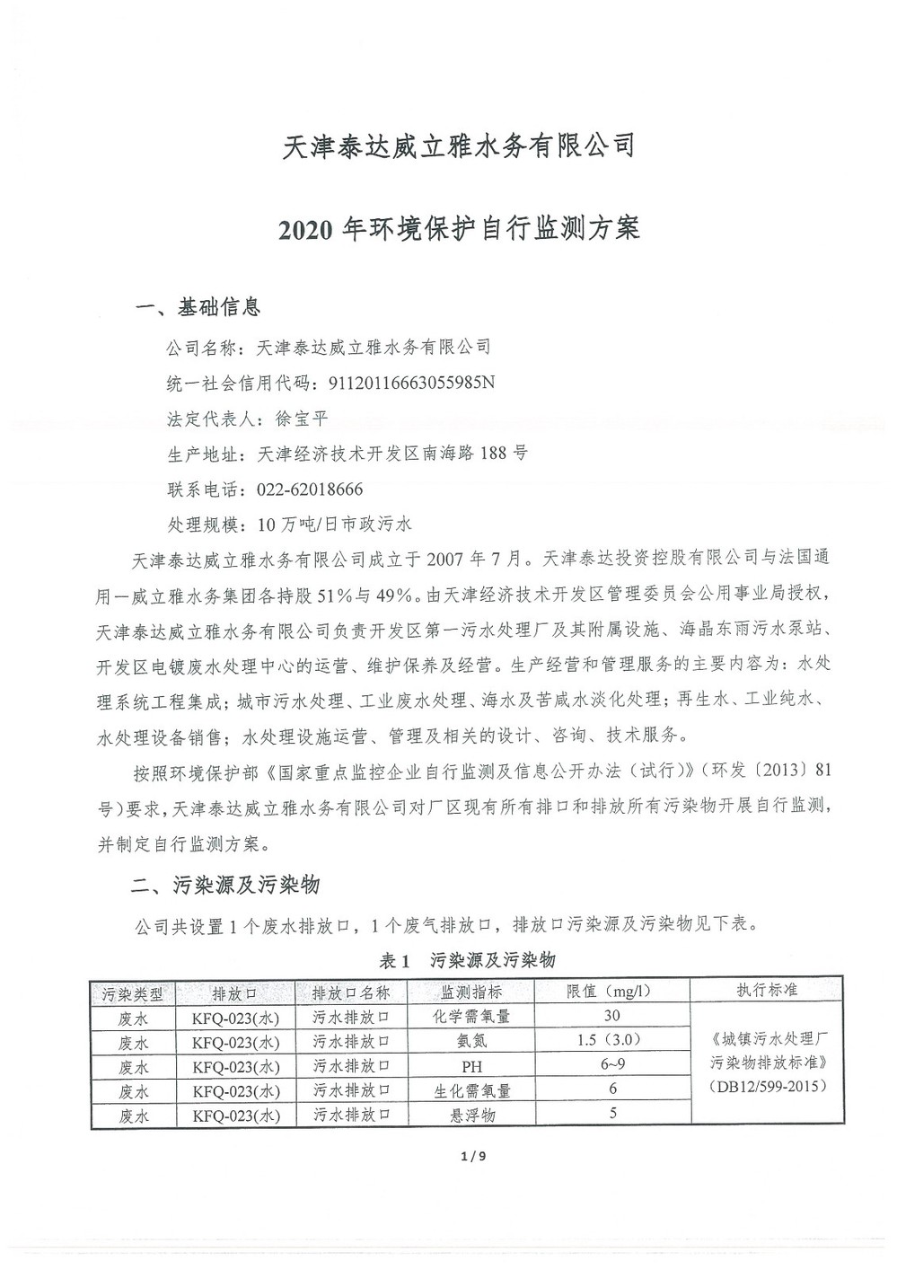 公司名稱:天津泰達威立雅水務有限公司